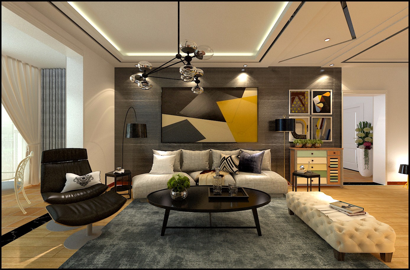 玉溪时代广场-110平现代风格装修效果图-创艺装饰cy1997