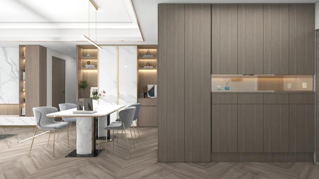 2021年12月6日-楚雄创艺装饰 本案是一套套内面积104㎡的三居室户型,现代轻奢风家装设计,空间色调温柔干净,设计简洁大气,自动感应灯带设计,减少入户全柜的呆板,让生活更加方便有韵味。整体木质板系列收纳柜搭配大理石背景墙温馨中带有高级质感!希望这套案例能给大家带来更多的装修灵感。