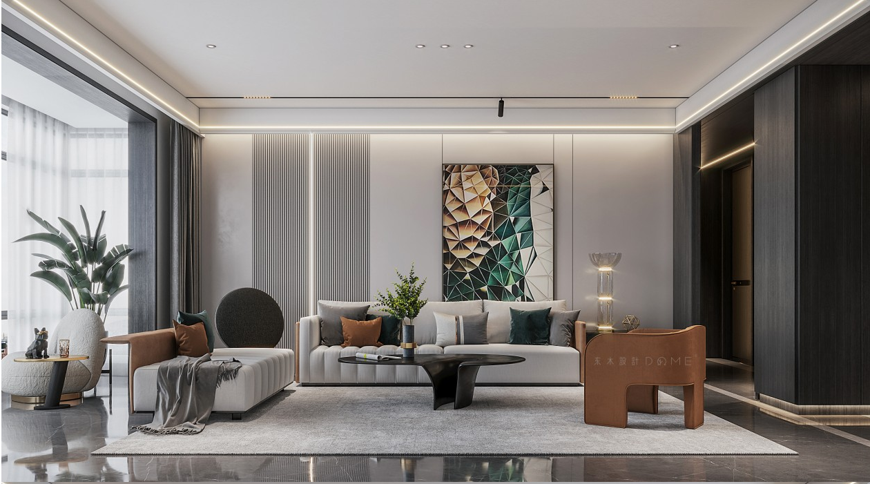 贵港装修效果图_彰泰红107平米样板房装修案例_现代轻奢风格