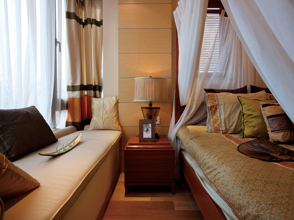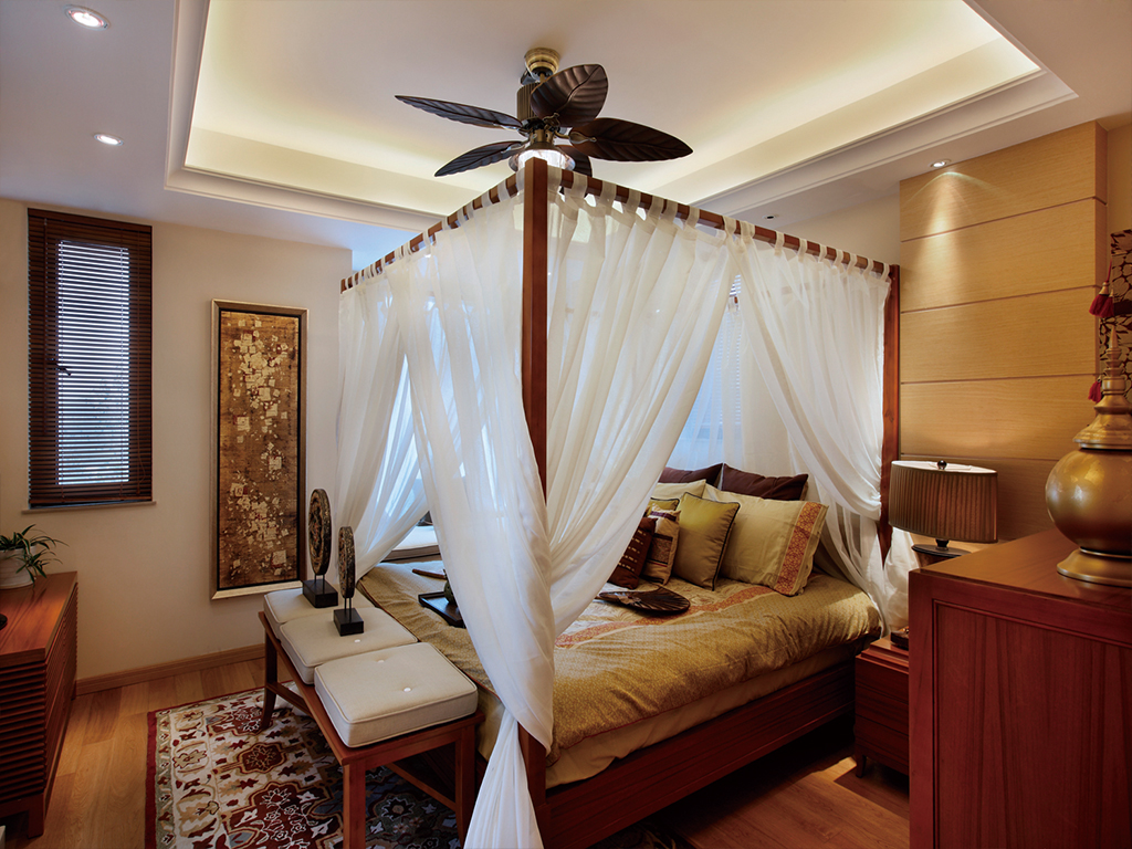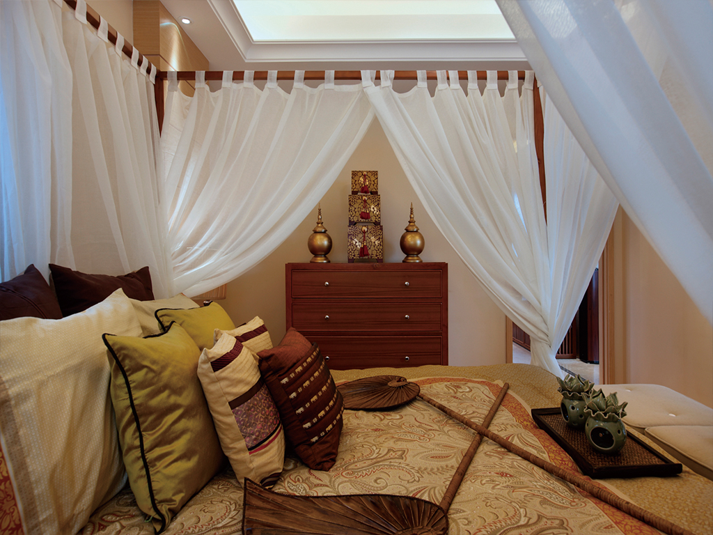 【楚雄创艺装饰】东南亚风格,采用当地民族特色以及精致文化的设计方式,适合喜欢静谧、文化修养较高的成功人士。广泛地运用木材和其他的天然原材料,如:藤条、竹子、石材、青铜,深木色的家具,局部采用一些金色的壁纸、丝绸质感的布料,灯光的变化体现了稳重及豪华感。