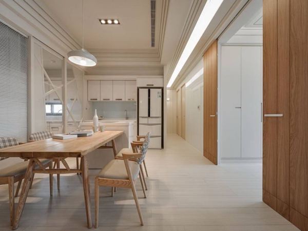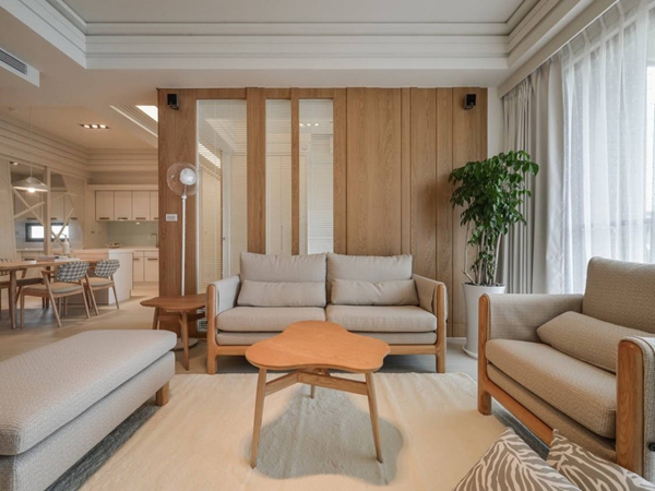 【蒙自创艺装饰】日式室内设计中色彩多偏重于原木色,以及竹、藤、麻和其他天然材料颜色,形成朴素的自然风格。日式家居装修中,榻榻米,半透明樟子纸,以及天井,贯穿在整个房间的设计布局中,而天然质材是日式装修中 具特点的部分。