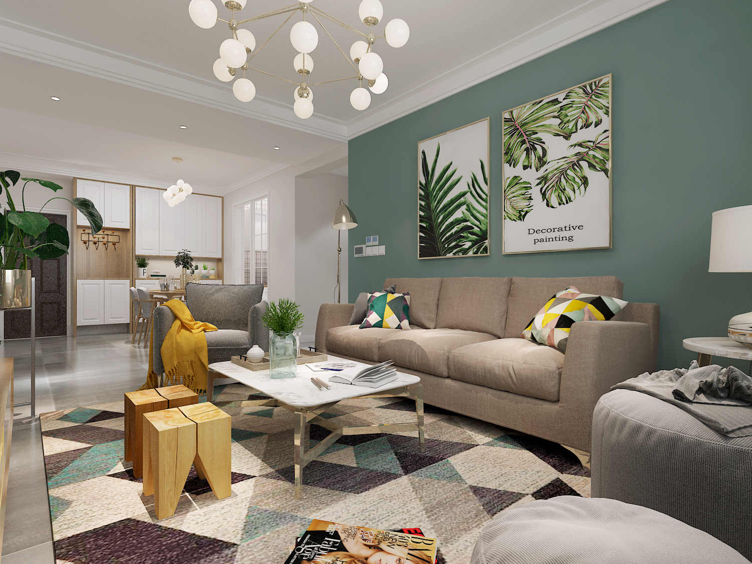 创艺装饰_120平北欧风格(设计理念:以色彩的碰撞凸显北欧的特色魅力)