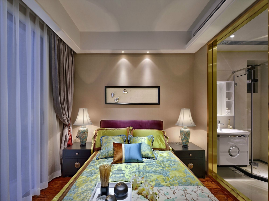 楚雄丹麓小镇-128平米新中式风格装修效果图-楚雄创艺cy1997