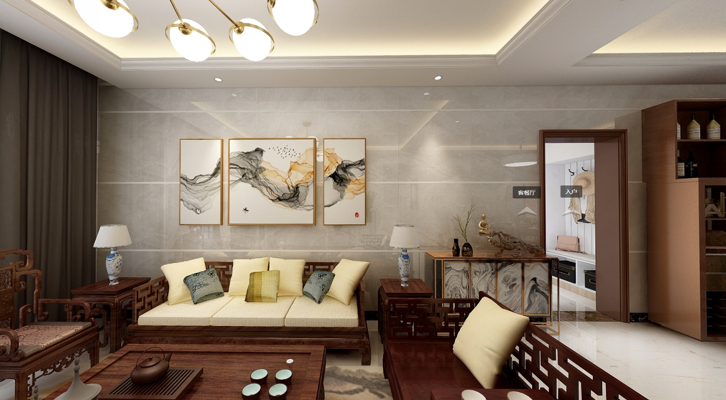 贵港迎宾华府-迎宾华府124平米装修效果图_新中式风格