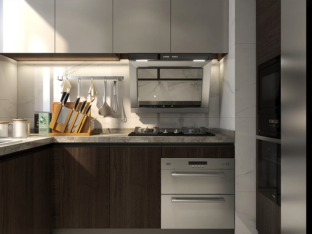 2020年8月23日-【滁州创艺装饰cy1997-13037878741】滁州时光风华105平米装修效果图,整体来说是比较紧凑的刚需房,设计师以白灰色调作为基础,用现代元素点缀凸显时尚轻奢的感觉,搭配格调满满的深灰色与实木家具,宁静、简洁,不显得生硬冰冷,充满家的归属感。