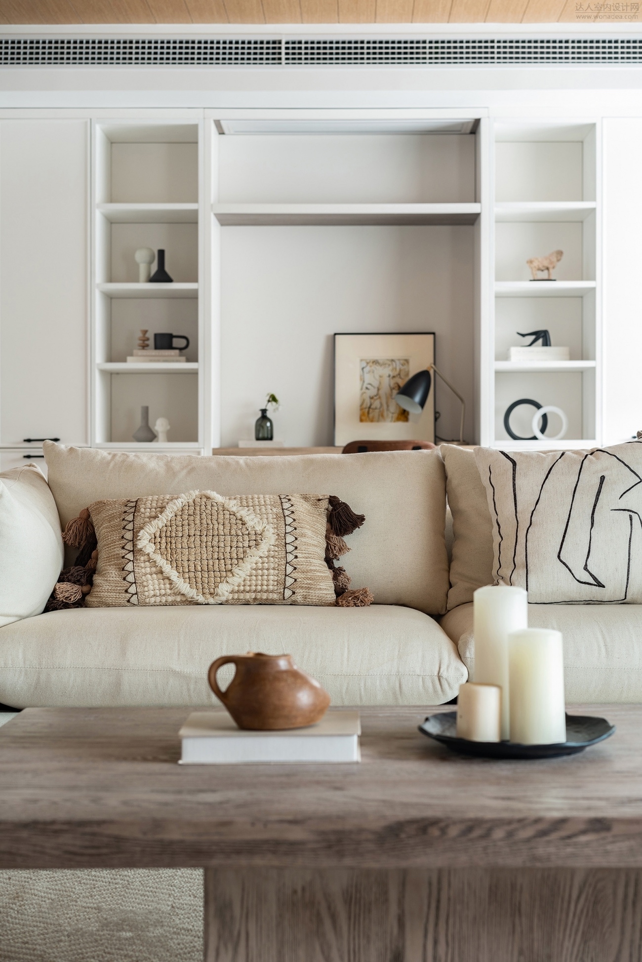 2021年7月6日-【赣州创艺装饰cyzs1997】今天给大家分享一套非常耐看的现代美式风格效果图,是来自嘉福尚江尊品的新房装修,全屋以白色为基调,以金属色配饰点缀家具、吊顶及背景墙,打造一个纯净且高级的空间环境。这套案例亮点在于电视背景墙隐形门的设计,小书房的门与电视背景墙浑然一体,让客厅空间更加简约美观。