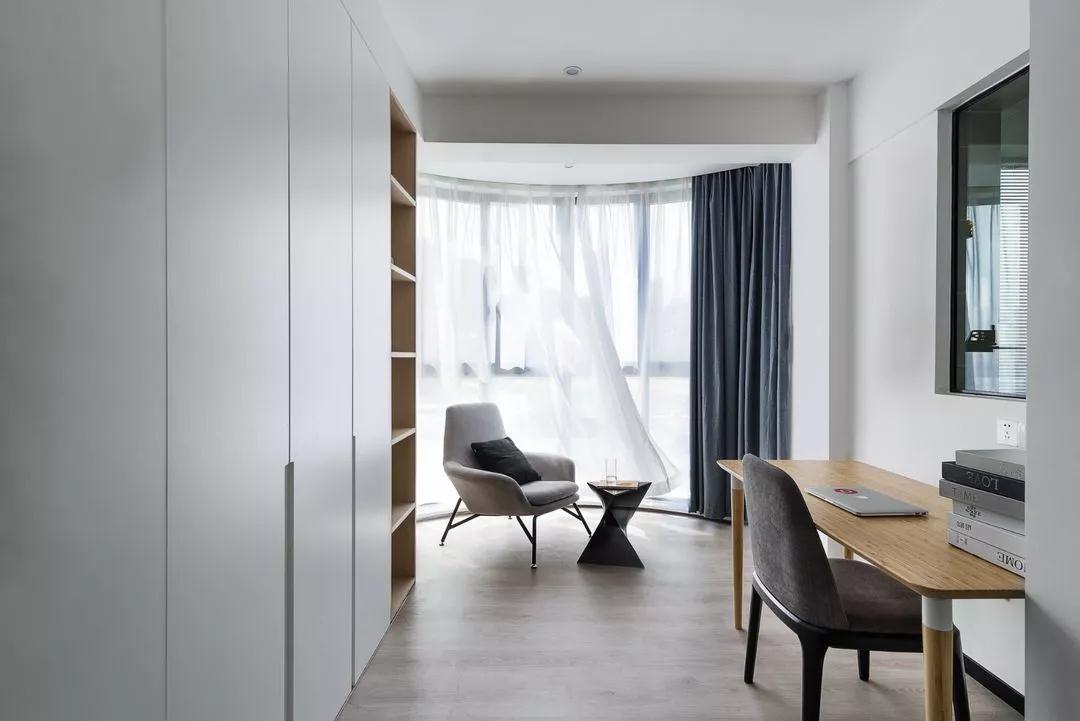 2021年8月12日-大理创艺装饰 这套141平米的现代简约风格装修案例,该户型原始结构非常的方正,户型上并没有做特别大的改动,原本厨房跟书房之间的隔墙没有,从新设置了隔墙的时候考虑了冰箱的摆放位置。