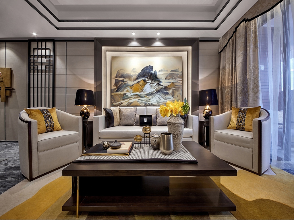 楚雄阳光水城—阳光水城134平米装修效果图_新中式风格