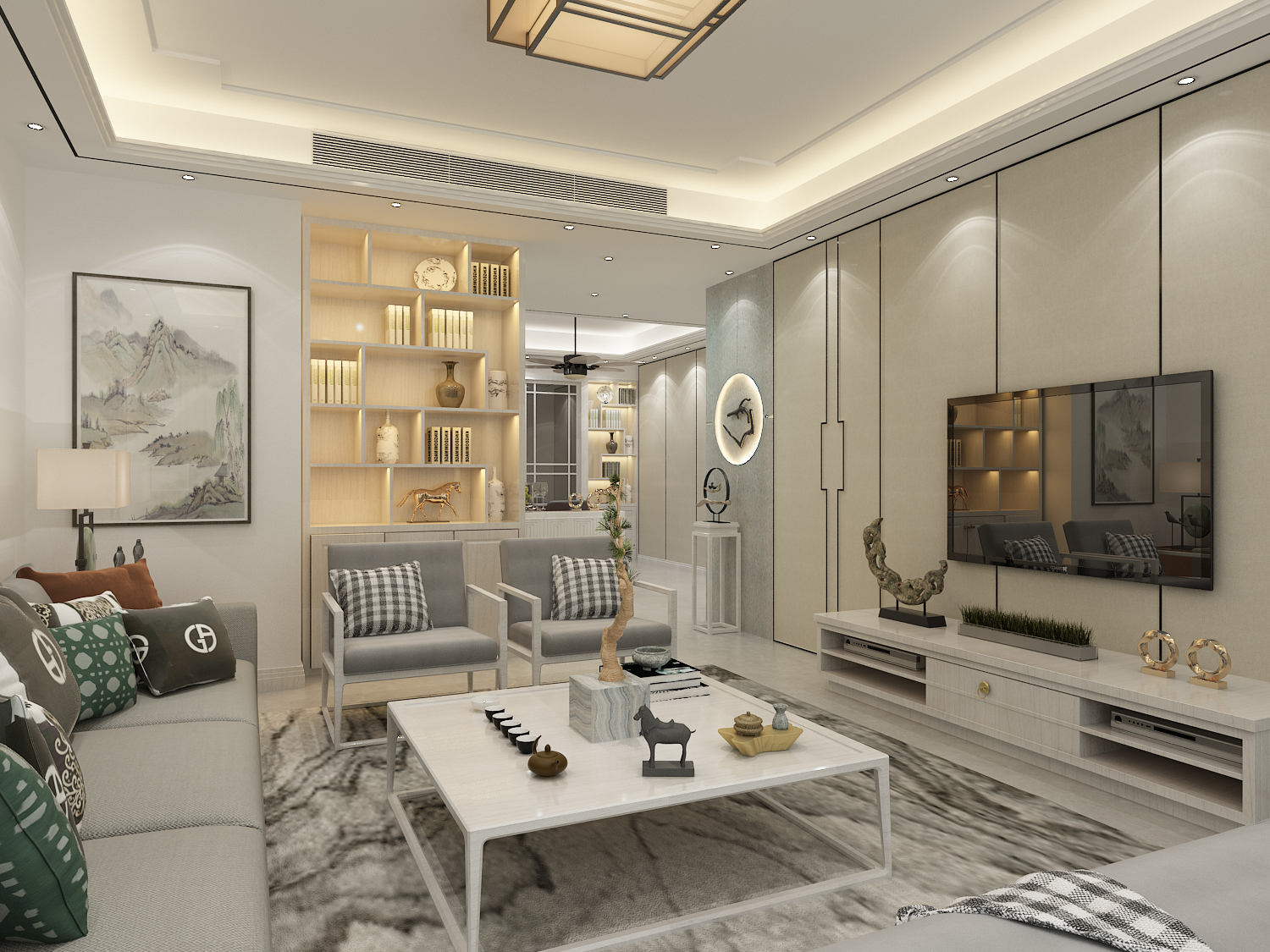 新乡金华装修效果图-金华湖海塘*新中式效果图_新乡创艺装饰