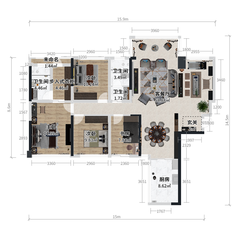华元奥林华府_钦州奥林华府113平米装修效果图_新中式风格