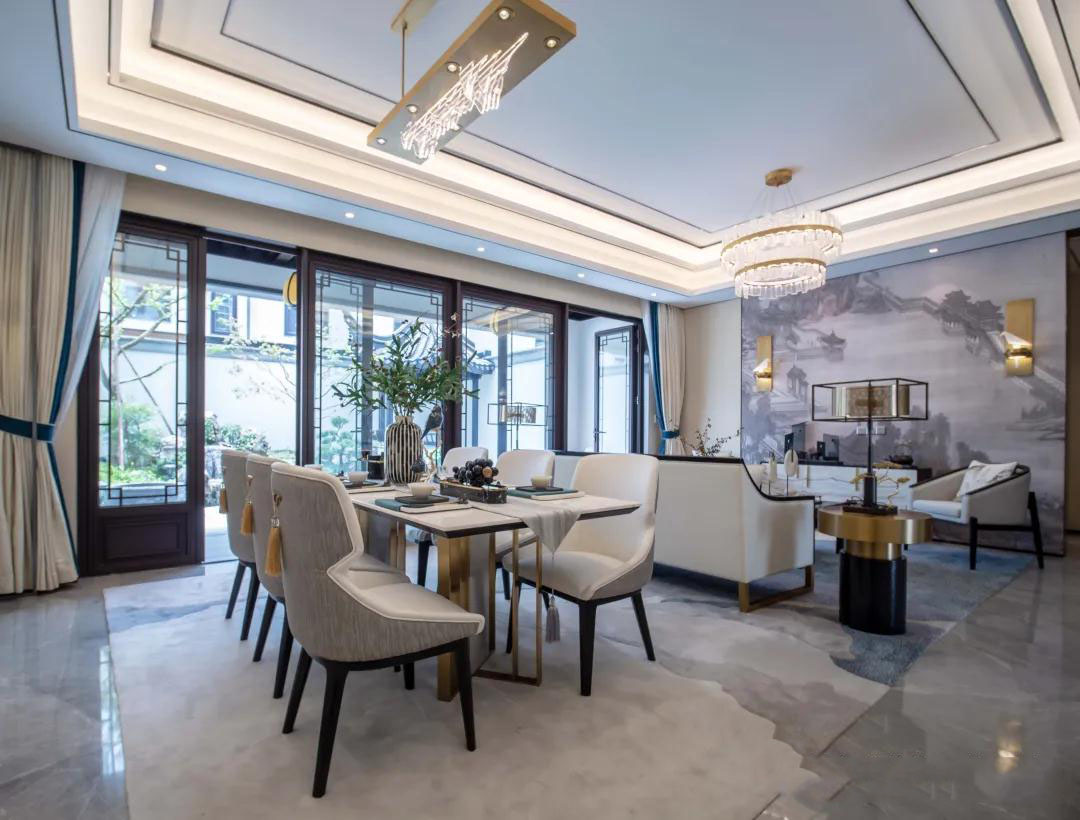 2021年7月25日-【保山创艺装饰cy1997】这套162平米的新中式风格装修案例,印象中的江南总是笼罩在薄雾之中,渲染出柔情似水江南风景,客厅包含江南的亭台楼阁和烟熏天地,整体呈现出古典的东方韵味,精致的中式家具和优美的水墨山水画搭配,让空间充满东方魅力,极具艺术感。