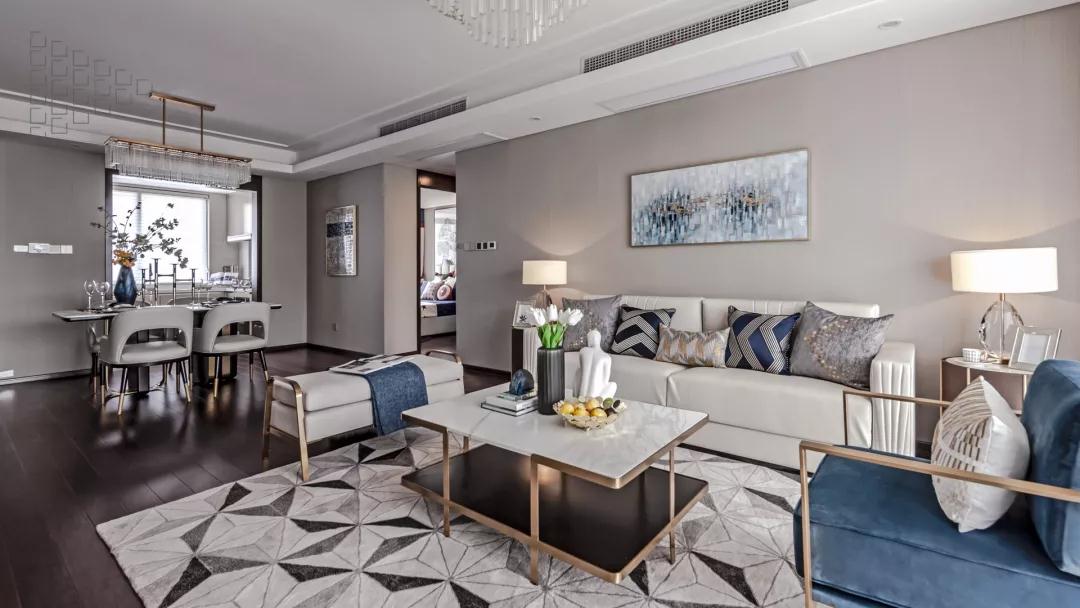 蒙自云间阙府现代轻奢风格装修设计案例120平米实景效果图