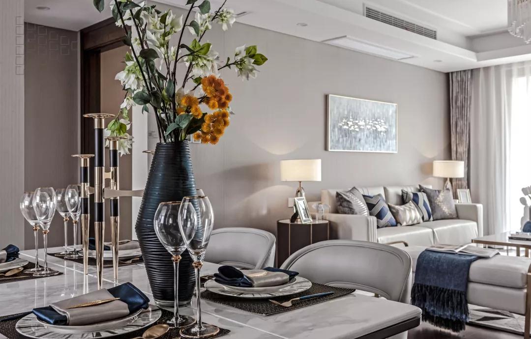 2021年8月10日-蒙自创艺装饰 这套120平米的现代轻奢风格装修案例,整体现代大方的空间氛围,布置上华丽端庄的家具与轻奢高档的质感布置,让空间呈现出优雅舒适的高档大气氛围感。
