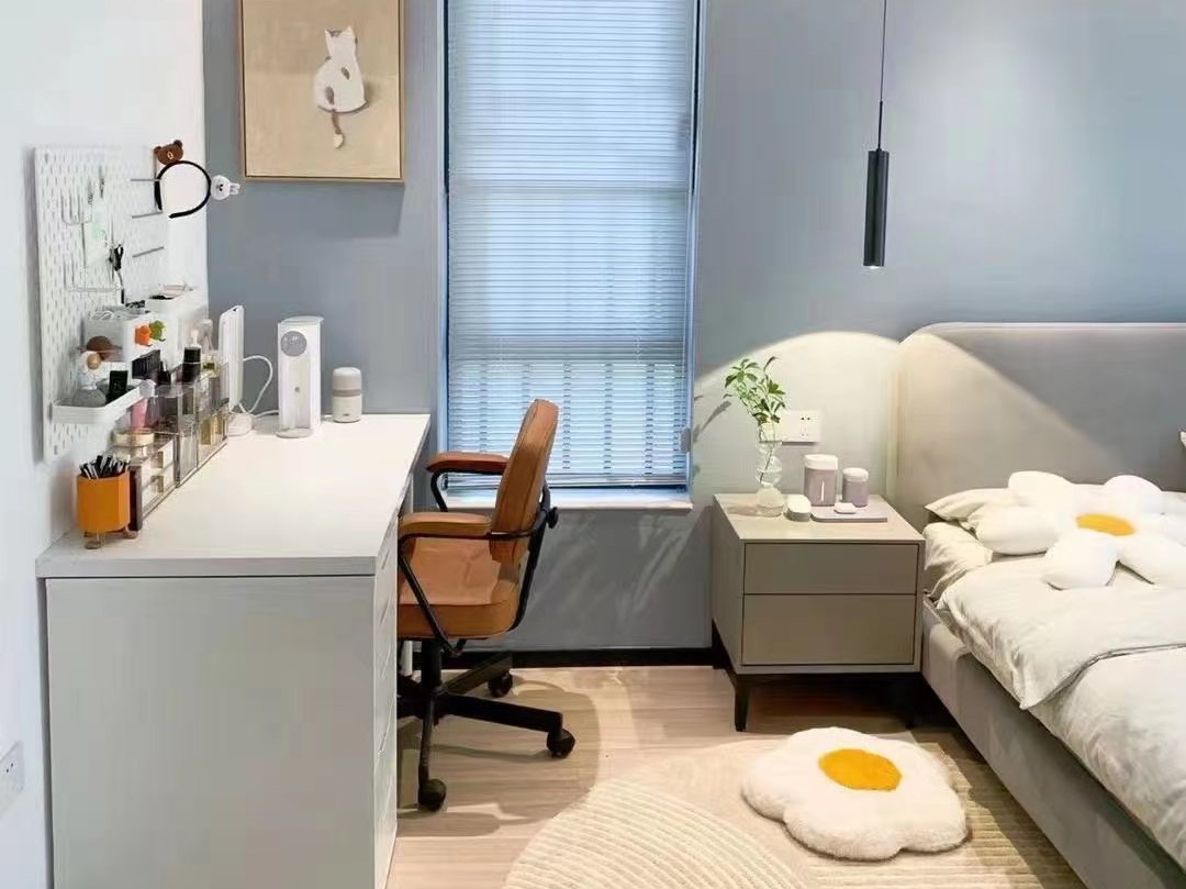 2021年10月14日-玉溪创艺装饰;合理利用空间,增加空间的功能性,百搭的颜色做基调延伸做装饰;灰色做空间的主要装饰,再搭配上灯光营造氛围,以不同的颜色深浅来塑造空间的层次感,轻硬装重软装,通过摆件装饰来丰富空间。