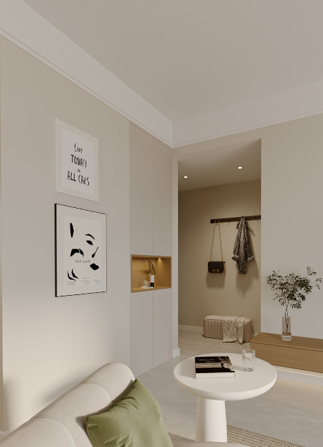 奶油风是近期年轻人喜爱的装修风格,本案业主是一对九五后的新婚夫妻,年轻而富有活力,温柔浪漫而热血,与设计师沟通后,小家主要以女主人的想法进行设计,通过巧妙运用低饱和莫兰迪色系搭配,选择原木家居打造温柔富有生命力的小家。